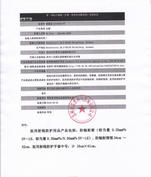 蘇州市蘇普利馬器械有限公司是專業(yè)從事醫(yī)用X射線防護系列用品、裝置、代理德國Dr.Goos-Suprema Gmbh.顧斯博士-蘇普利馬有限公司生產的原裝進口鉛衣及醫(yī)用觀片燈的生產銷售企業(yè).生產的X射線防護圍裙均來自美國SHIELDING公司的最新型超薄型防護材料,,具有防護性能可靠、穿戴舒適、輕便柔軟、操作自如等諸多優(yōu)點.產品均通過相關X射線檢測機構的檢測,達到產品標準的要求.X射線醫(yī)用膠片觀察燈。是采用全LFD燈光技術。具有重量輕,光源均勻,亮度高,無頻閃,不變型,使用壽命長等特點。均取得了生產許可及醫(yī)查看更多>>
